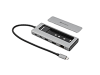 Sandberg USB-C 6in1 Travel Dock SSD Case features essential expansion ports and data storage capability in one compact device. Connect your laptop via USB-C and easily access display, network, and extra ports while also inserting an M.2 NVMe SSD. The dock makes it easy to set up your workspace, whether you're working from home, at the office, or on the go. You can connect a display, network, and accessories while also passing power through the dock keeping your laptop charged with the very same cable.