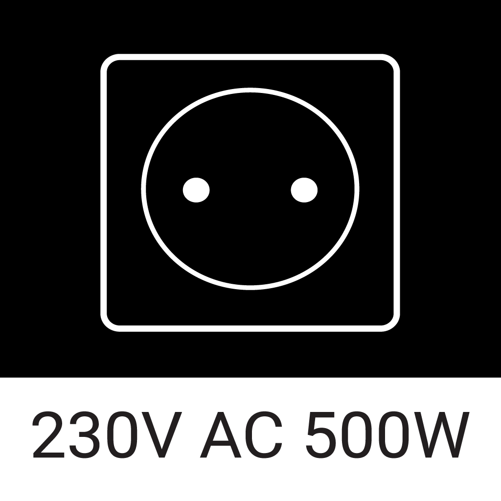 • 2 x AC EU-wall socket: 230V AC, 50 Hz pure sine wave (Total 500W max)