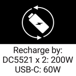 • 2 x DC-port (5521) output: 12V/8A (96W max)